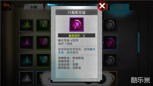 【紫水晶】增加生命值和治疗(全异常抗性),属于通用型宝石,最适用于召唤和1号主T位。