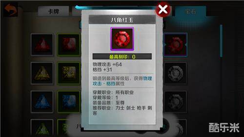 【红玉】增加物理攻击和格挡,属于物理伤害类宝石,最适用于剑士。