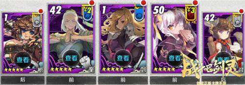 此套卡牌组合评价:主要是坎给水夜叉的超强加血保证了水夜叉在1号站住脚,4号的离打乱敌人的队形,巧儿的虚弱组合连击+兰兰的沉默控制!