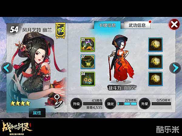 艺妓幽兰的好处在于其换位的技能,将5号位最难打到的后排换过来,一旦集火秒杀,就可以造成多打少的局面。不过艺妓幽兰作为气功师本身也是很脆的,所以一定要在强化上尽量前期至少强化到3、4;装备都用究极的套装,刻印全满。这样才能站得住。