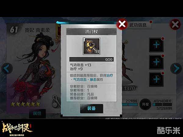 既然在武功上,贵妃 南素柔既有输出又有恢复,那么在培养上,也是可以两个方面同时进行。通过装备、宝石的提升,来完善贵妃 南素柔的极限输出和恢复能力。