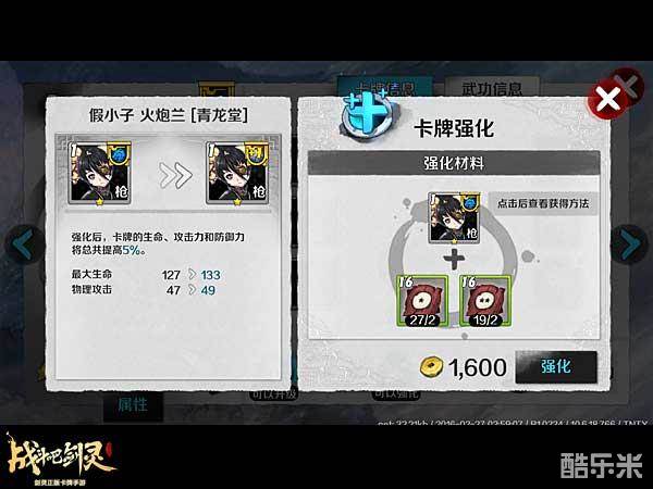 假小子 火炮兰强化需要用到的材料是红色的外功身法,由于用到这个材料的卡牌较多,假小子 火炮兰作为后期的卡牌,是重点培养的对象,建议一直强化到最顶级。