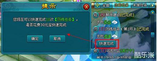 5.接受任务后,可以花费30元宝快速完成全部任务,效率极快!