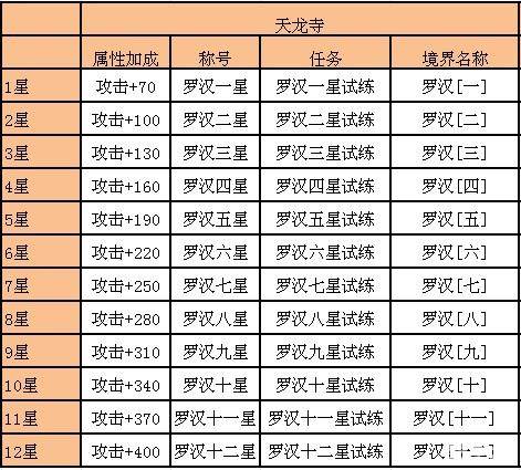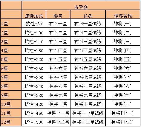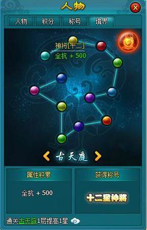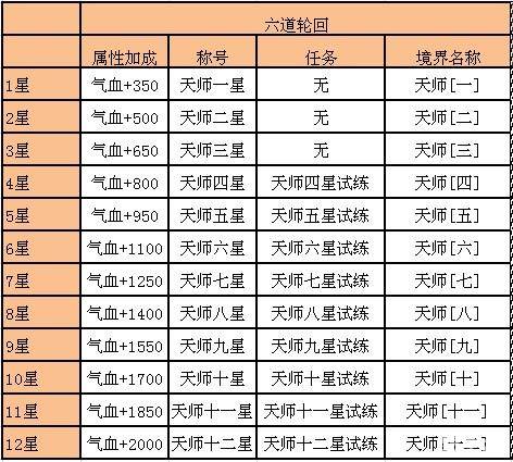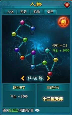 根据境界等级获得对应属性加成、境界称号,可接到对应星级的境界任务(每日一次,限时完成), 星级越高任