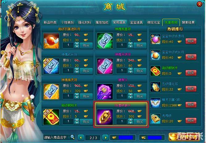 1.背包中有道具【阵营转换卡】(在“商城—常用道具”第二页可以购买到阵营转换卡。)