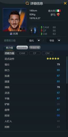 FIFA Online 3中,托蒂凭借强壮的身体和优秀的操作手感在前腰位置上具有很强的竞争力。护球能力好,视野不错,这保证了他能够传出各种威胁球,踢球爱动脑子,想象力不错,属于拥有立体思维的球员。