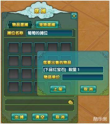 4. 待要出售的物品设置价格完毕后,点击“出摊”按钮,即可开始摆摊;