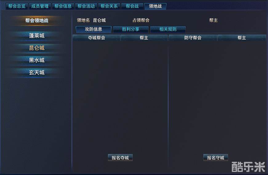 2、已拥有领地的帮会在领地战中默认为防守方,不可报名做攻击方;