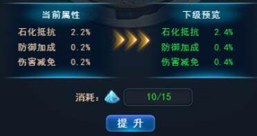 下面则是可以看见当前提供的属性增幅,石化抵抗,防御加成,以及伤害减免。也就是净化之戒是完全的防御。