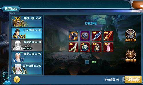 小编特别要提醒下玩家,击杀世界BOSS任务每天只能够做三回,在击杀完紫罗老祖后小编完成了一次击杀世界BOSS任务。
