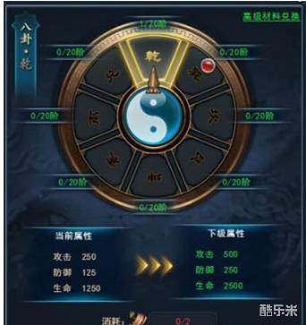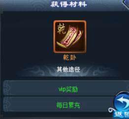 比如乾卦就是乾那一栏的提升必要材料,但是所以材料都是从VIP奖励以及每日累充中获得。也就是一般平民都没法获得这些。所以说土豪们想要属性暴增赶紧去试试吧!
