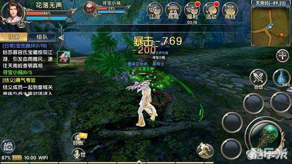 藏宝地点四面埋伏,挖宝的过程中除了挖到金钱、宝物、神秘的箱子,也许还会引来宝图大盗抢夺宝藏,要时刻小心被破坏挖宝计划,或巧妙利用游戏中的自动寻路功能或者使用自由轻功功能迅速离开是非之地,才是上上之道。