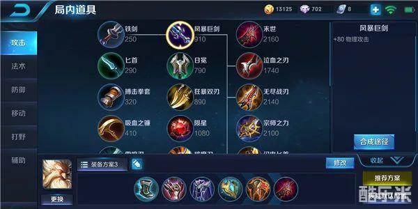 解析:抵抗之靴仍然是移速装首先,逆风带线时能够增加老夫子的逃跑几率。反伤刺甲的反伤效果配合二技能的免伤效果能够使老夫子在逆风时轻易躲开敌方射手英雄的消耗打击。魔女斗篷为老夫子提供法术防御能力,使老夫子即使在逆风情况下也有单杀敌方法师的能力。极寒风暴能够减少老夫子的技能冷却时间,使老夫子能够频繁利用二技能逃跑清兵,老夫子的大招冷却时间变短,使得我方有更多击杀敌方落单英雄的机会。红莲斗篷能够增强老夫子的清兵能力,使逆风带线的老夫子能够快速清理兵线。最后在双方装备将要打平时,老夫子可以补出一件输出装,来增加自身的攻击能力。