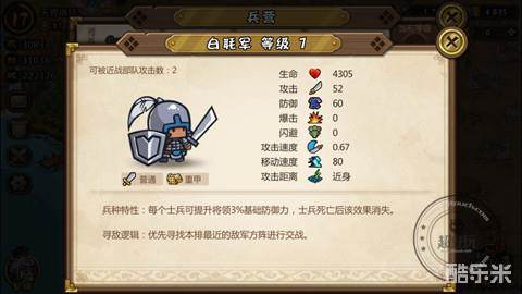 白毦军的兵种特性为可以提升奖励的基础防御力,士兵死亡后消失;