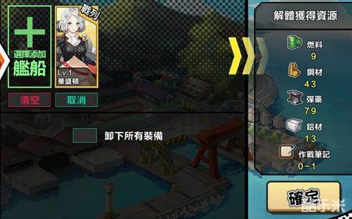 多余的舰船可以进行解体获得资源补偿。解体可以获得一定数量的资源以及作战笔记。根据解体舰船的种类、稀有度不同,获得的资源种类和数量也不同。