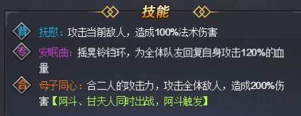 有输出也有回复,而且是全体恢复。优秀的攻击充足的奶量让甘夫人十分强大,值得进行培养。