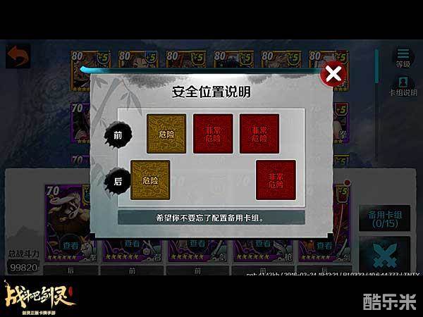 每个BOSS的攻击特点不同,点击右上角的"卡组说明",可以看到安全位置的说明图例。以极限楼杏花BOSS为例,比较危险的位置是右侧的3个,相对安全的是2号位和4号位。这样就要把输出最高的卡牌尽量安排在这两个位置,比较肉的力士、拳师和剑士尽量安排在右侧。