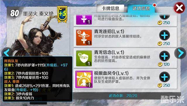 秦义绝的核心技能,在高等级战斗中防护罩这一武功经常可以颠覆战局。八星墨灵火秦义绝终极技能的影响目标从同排变为全队,让整个队伍享受到360度无死角、7秒的铜墙铁壁和回复,不可谓不强。