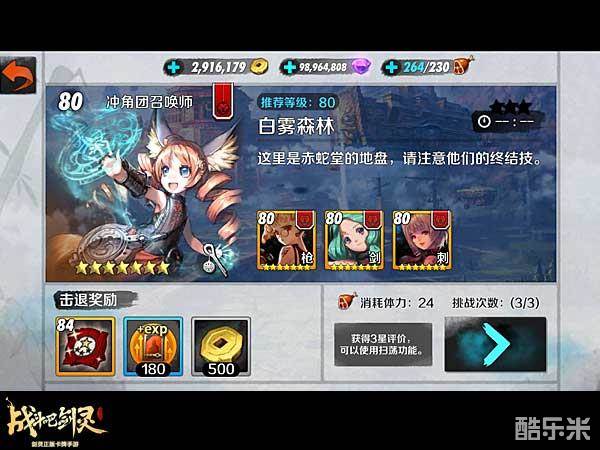以上就是《战斗吧剑灵》冒险副本白雾森林英雄模式第六关的三星通关技巧和阵容搭配推荐,仅供参考,希望对大家有所帮助!