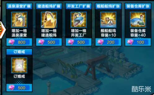 2、A姐在这里建议将钻石拿去开澡堂,把澡堂开到4个,因为前期船只级别低经常受到伤害而且维修时间不超过10分钟,并且钢铁少女这款游戏在闪避上没有特别的明显,前期经常的让老婆们受伤,所以4澡堂开局可以更效率的让各位酋长去打猎。(仅为个人观点,最终以公测版本为准。)订婚戒指什么的,人家才不会告诉你想要呢~