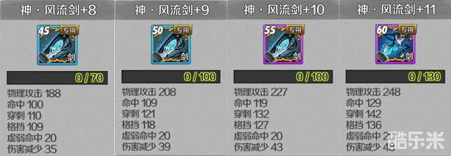 神·风流剑也有着超高的成长属性,以下是风流剑详细属性列表: