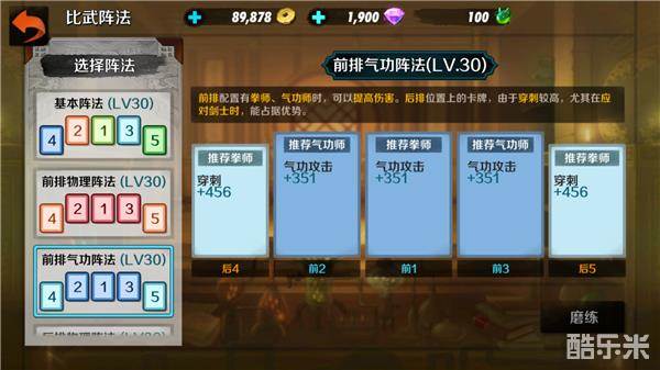 前排气功阵法是一个剑走偏锋的阵法,适合在江湖大战或者斗神争霸中出奇制胜,气功师培养较多的玩家可以尝试。