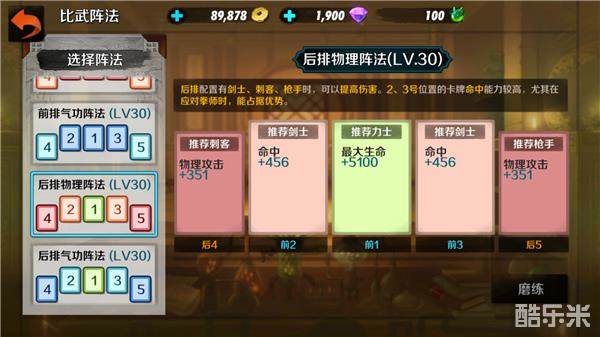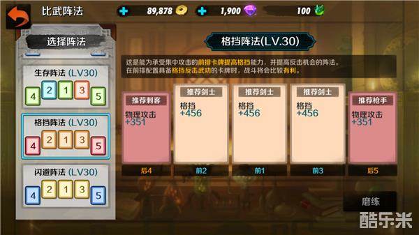 针对当前不少玩家前排用剑士较多,尤其是飞月、晓龙这种具有格挡反击武功的卡牌,增加格挡数值,可以提高反击的几率。同时,后排的两个物理攻击加成位置也可以放上枪手或者刺客来增加输出能力。