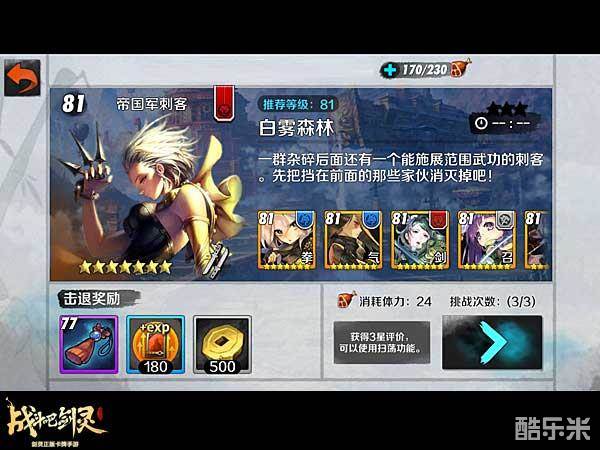 《战斗吧剑灵》白雾森林第十关的英雄关卡,相比普通关卡来说难度增加了很多。 普通的关卡重点在于进攻,而英雄关卡则是如何做好前排的防御工作。