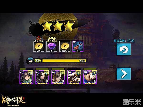 通关奖励:侠客镜*1、卡牌经验值+90、金币*500