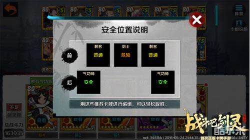 根据提1号位置为剑士(位置安全等级为危险),2号/3号为刺客(位置安全等级普通),后排4/5号为安全,提示职业为气功师。输出不足阵营不完整的情况下切勿按照提示分配卡牌,我的推荐是利用控制技能去打断对面,让敌人只能平A输出。(连招伤害并不会低于武功释放伤害,反之连招伤害高于武功伤害)。