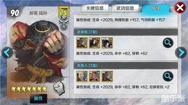 推荐理由:乾对于所有玩家来说都有一定的星级基础,西子和神慧都有着稳定的获取途径,命中穿刺的属性也完美适合这三张卡牌的定位。如果有培养这三张卡牌的玩家可以考虑优先提升下该条情缘的等级
