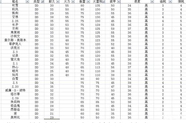 驱逐部分由于缺少火力狗粮,缺失了许多船的火力部分,不能完整的从全盘来考量殊为可惜