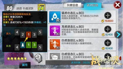 拳师可以恢复内力?这绝对是首张卡牌,第4回合20点内力的回复,可以缩短同排队友2回合蓄力。同时,千魂灵妖的伤害不俗,每提升一级武功增加+13点伤害值,完全不像是一个拳师职业。