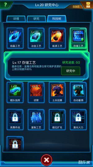 指挥官进入研究中心后,可在研究栏或科技树中查看存储工艺。存储工艺顾名思义就是提升晶体仓库、金属仓库和能源仓库等各项资源储存上限的科技。通过研究并升级存储工艺,可点燃指挥官疯狂囤货的心,不但可以永久获得额外的资源保护量,还能解决基地资源储备不足的尴尬局面,可谓是两全其美。