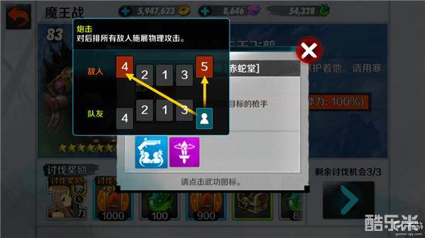 BOSS3技能对后排进行高伤害输出,可用金刚罗汉护盾防住