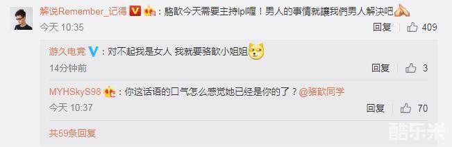 但是记得丝毫不慌,很爷们的回答粉丝们,“骆歆今天要主持LPL,男人的事情就让我们男人解决吧。”