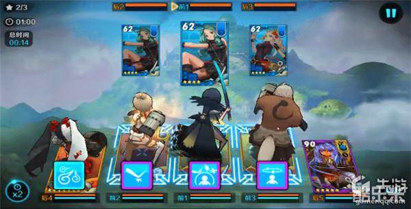 第二波和第一波一样,对手是前排剑士,后排剑士、气功师。秦义绝先手控制开盾保护前排免疫控制,枪手可以压制后排内力,在保证已方安全的情况下,然后普攻积攒内力进入下一关。