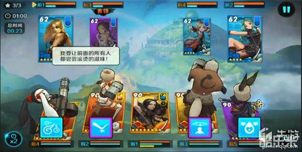 第三波对手是前排力士、剑士,后排BOSS气功师、召唤师,开场后除易云山 ,其他卡牌利用先前积攒的内力释放一波技能输出伤害,然后再易云山释放技能,再输出一波伤害,顺利通关。