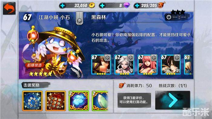 关卡怪物: BOSS江湖小贼 小石(67级5★) 【白虎堂】,攻击后排敌人单体