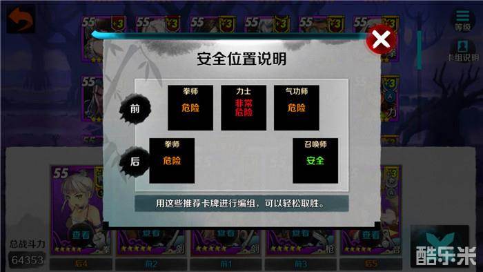 卡组安全位置说明:【前排】1号位【非常危险】,2号位【危险】3号位【危险】