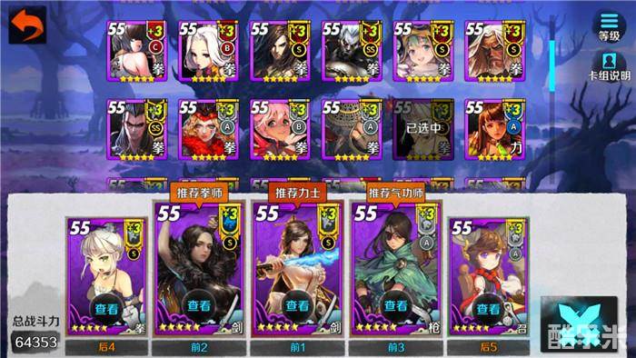 第三波对手是前排力士、拳师,后排BOSS枪手、剑士、气功师