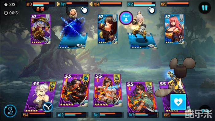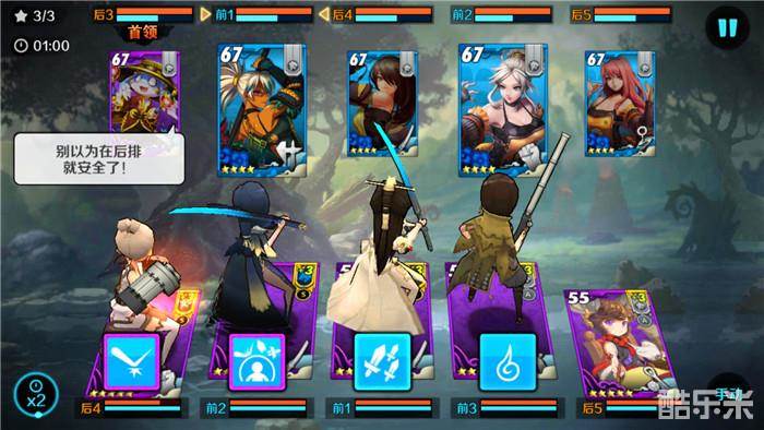 第二波,对手是前排剑士,后排刺客、刺客、枪手、枪手