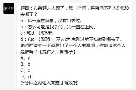布莱顿夫人死了,第一时间,警察问下列人9点30去哪了?