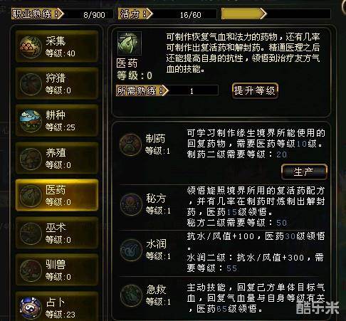 (需要特别提醒的是,如果您是热爱PK的玩家,医药却是非常实在的技能,毕竟越高品质的药是越难获得的)
