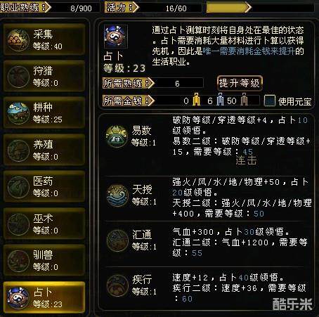 最后需要特别讲的消耗类生活技能则是占卜:
