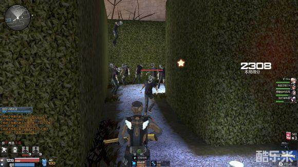 当你走到这个地方的时候,一定要记得放个炮台,因为一转角就会出现10几个紫衣僵尸和3-4个蓝衣僵尸,所以要放炮台拖住他们,然后趁机逃跑。