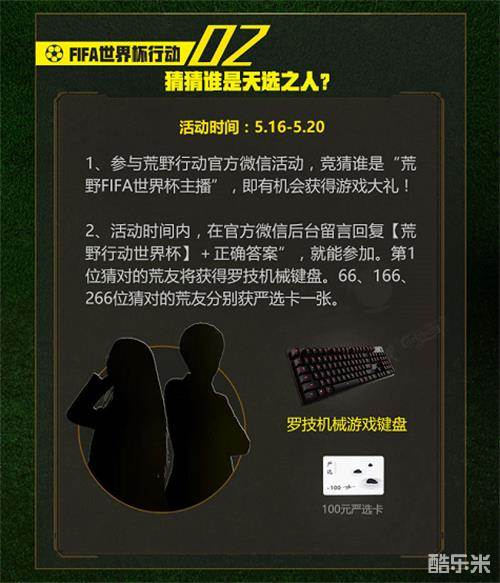 在《荒野行动》官方微信后台留言回复【荒野行动世界杯】+正确答案,即可参加。第一位猜中的荒友将获得罗技机械键盘一个。第66、166、266位猜对的荒野将各获得网易严选卡一张。