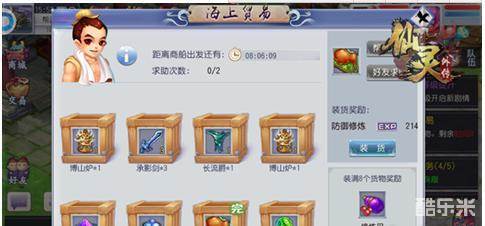 在《仙灵外传》中,海上贸易能快速增加游戏角色修炼技能,为提升修炼技能而发愁的你,赶紧点开主界面日程中的海上贸易选项吧!每天都一次机会,可帮助东海湾的商步启进行货物贸易,获得10点活力值哦!