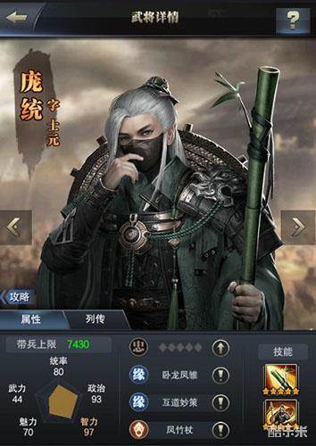 以上就是新神将庞统的解析了,智谋超群,技能逆天,更有顶尖缘分加成,这样的庞统你值得拥有!祝各位主公欧气满满,早日将庞统纳入麾下!