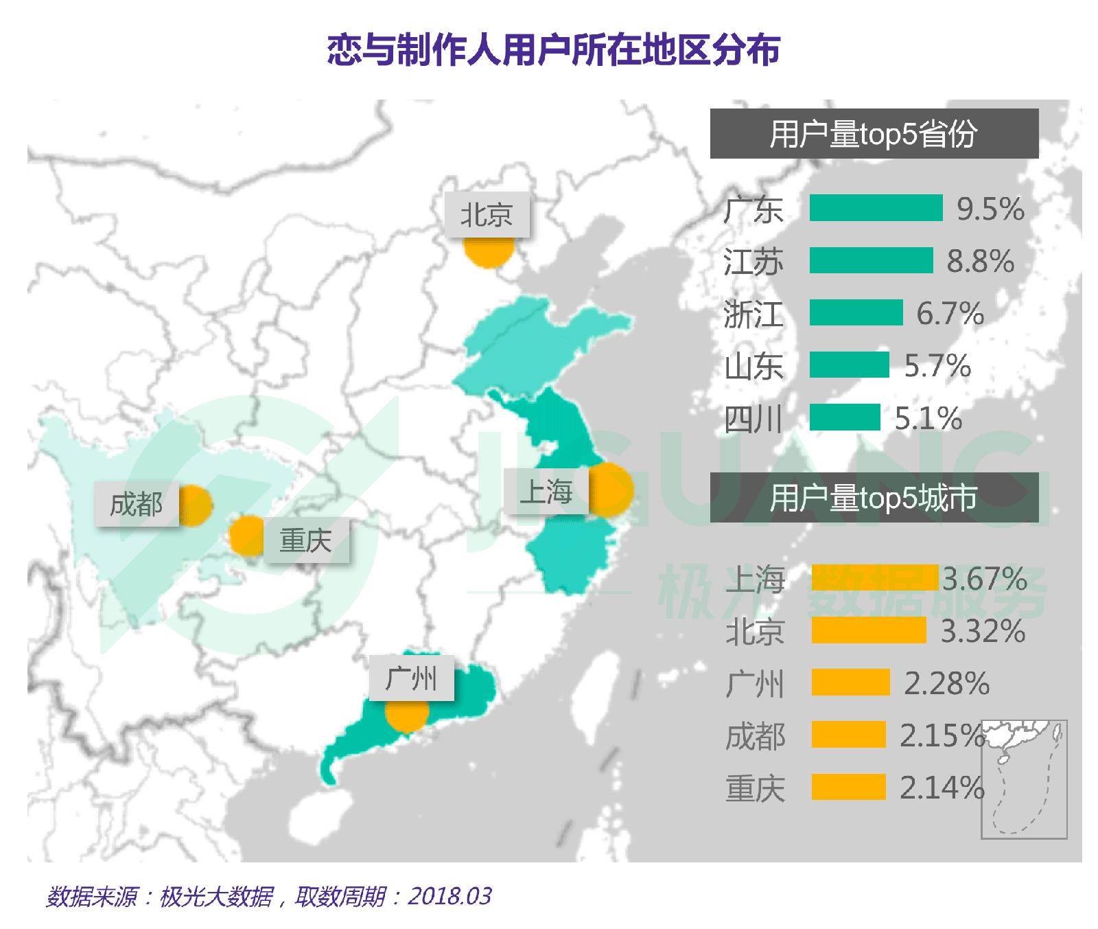 根据极光大数据显示,恋与制作人用户中32%来自一线或新一线城市。